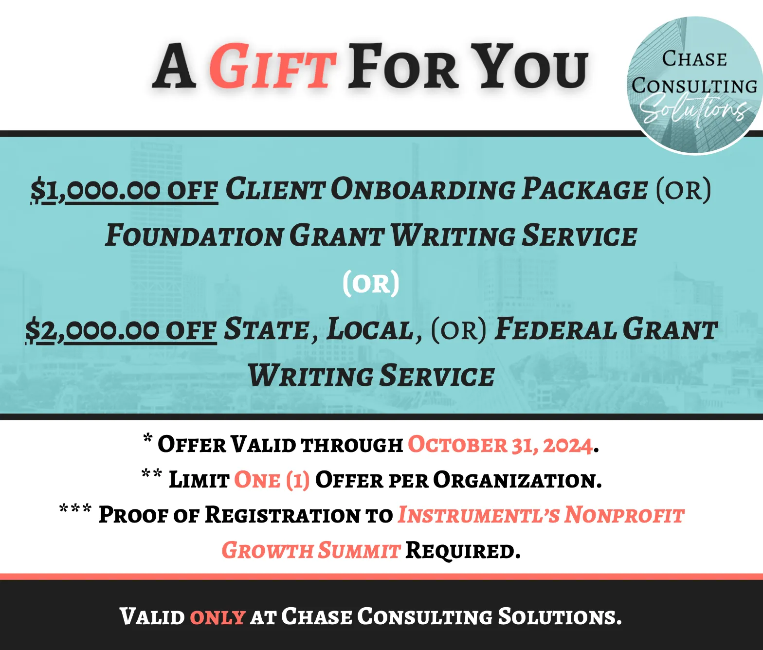 Receive a limited-time free 30- minute consultation and discounted grant readiness assessment. Plus, receive 10% off consulting services or products. We offer a range of tailored grant readiness packages designed for smaller and newer nonprofits with limited grant experience.